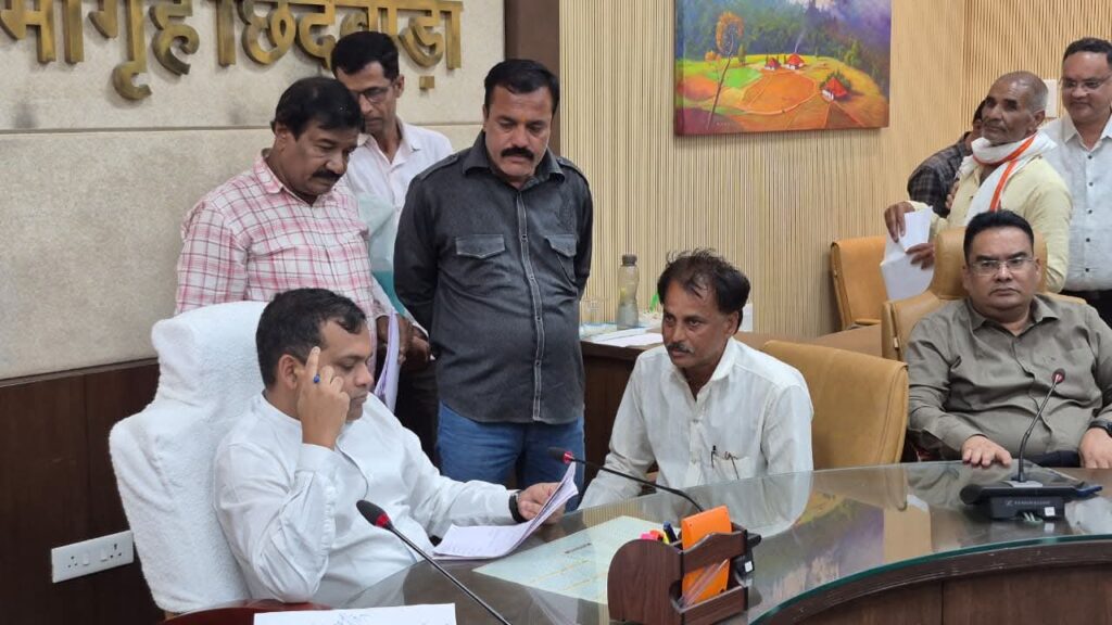 छिंदवाड़ा :- राज्य शासन के जनसुनवाई कार्यक्रम के अंतर्गत प्रति सप्ताह मंगलवार को आम नागरिकों की समस्याओं की सुनवाई की जाती है और संबंधित विभाग के अधिकारियों से इन समस्याओं का त्वरित निराकरण कराया जाता है । कलेक्टर श्री हरेंद्र नारायन ने आज कलेक्टर कार्यालय के सभाकक्ष में आयोजित जनसुनवाई में 150 आवेदकों की समस्यायें सुनी । इस दौरान जिले के शहरी और ग्रामीण, दूरस्थ अंचलों से आये आवेदकों ने उपस्थित होकर अपनी समस्याओं के निराकरण के लिये आवेदन प्रस्तुत किये । जनसुनवाई में मुख्य रूप से जमीन का सीमांकन करने, भू-अधिकार पट्टा दिलाने, जन्म व मृत्यु प्रमाण पत्र बनाने, जाति प्रमाण पत्र बनाने, मुख्यमंत्री लाड़ली बहना योजना का लाभ दिलाने, खसरा-नक्शा दुरूस्त कराने आदि से संबंधित आवेदन प्राप्त हुये। जनसुनवाई के दौरान आवेदकों के बैठने की व्यवस्था भी की गई थी।